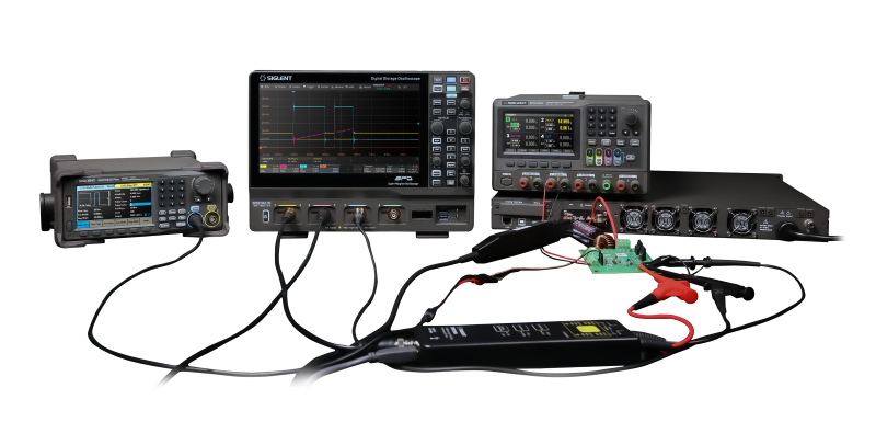 SIGLENT High Resolution Oscilloscopes are all equipped with an optional power analysis kit that is used to analyze switch mode power supplies. Measurements include: