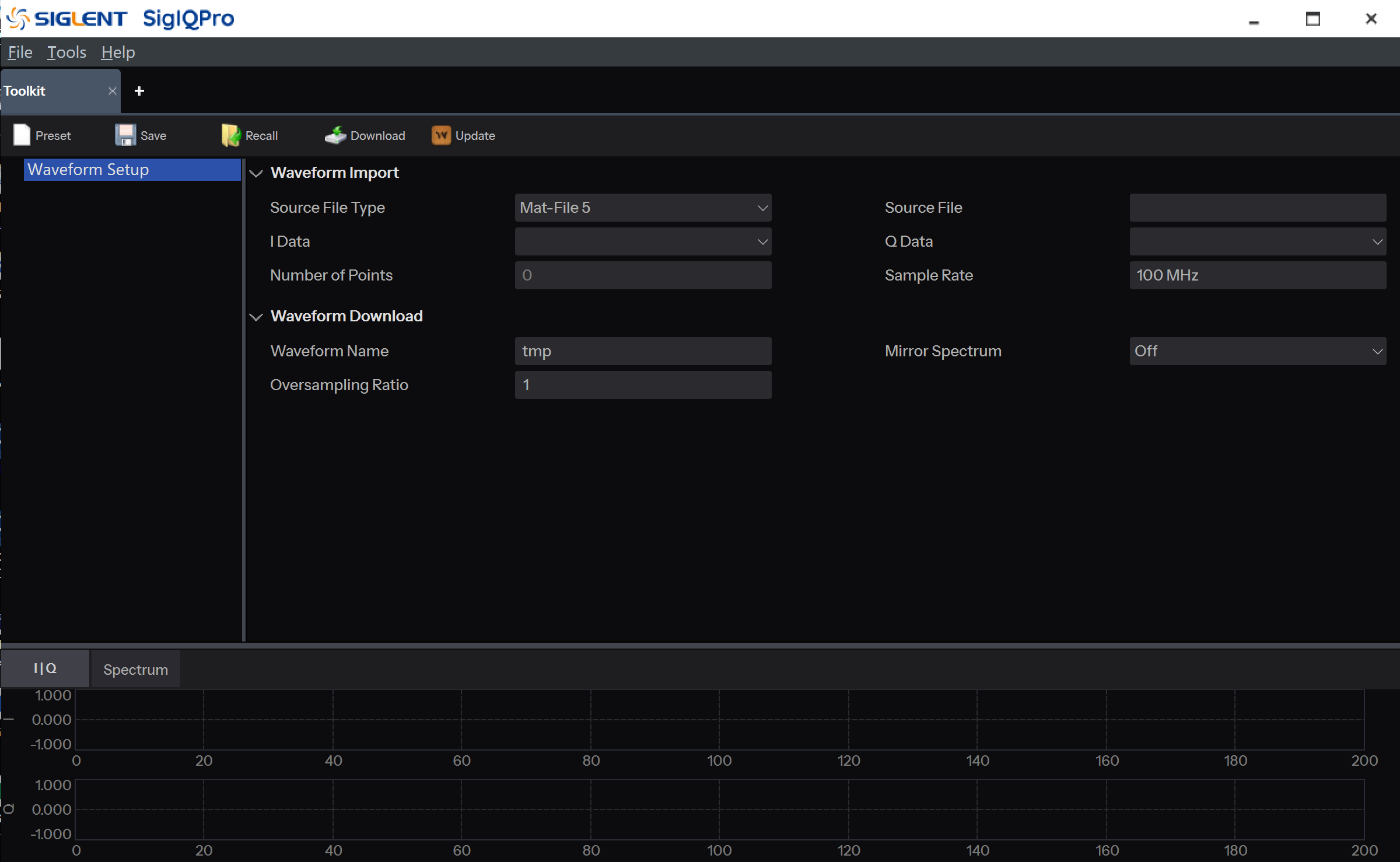 SigIQPro is a flexible PC-based signal generation software that takes signal generation to a whole new level. It supports a wide variety of cellular and wireless connectivity standards, making it easy to generate complex signals that are fully compliant with Bluetooth, IoT and other communication standards, meeting the requirements of the Internet of Things, short-range communications, and other wireless cellular communications. Waveforms can be transferred directly to SIGLENT signal generator via GPIB, USB or LAN. Get interactive control of your signal generation through direct connection with a variety of SIGLENT instruments. Users can quickly import MATLAB-generated *.mat files or *.txt files, *.dat files, *.csv files and other ASCII files into SIGLENT signal generator for playback using the file conversion Toolkit function in SigIQPro software.SigIQPro has a user-friendly interface that provides deep insights, displays a wide array of performance metrics and brings these powerful signal generation capabilities to the desktop. Users only need to set the basic parameter information of the required signals to generate the required waveforms quickly and easily. The tree view allows users to quickly switch between waveform settings and packet settings to help speed up test operations. In addition, the I/Q waveforms, frequency domain and constellation diagrams of the signals to be generated are visually displayed on the graph view. The entire signal generation process is intuitive, convenient and fast, minimizing the time engineers spend on signal generation and improving test efficiency.