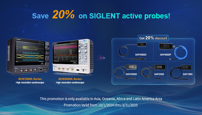 For any newly purchased SDS6000A and SDS7000A series oscilloscope, get 20% discount on active probes.