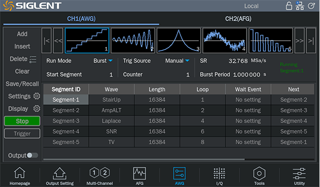 With 196 built-in arbitrary waveforms and a memory depth of up to 40 Mpts per channel, the SDG3000X provides the capacity to store and accurately reproduce complex signals. It also features a flexible sequence mode, allowing users to define playback order and loop counts for each waveform segment—ideal for custom and repetitive test scenarios.