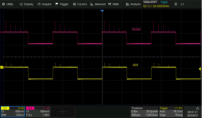 TrueArb enables point-by-point waveform generation across a sampling range of 10 mSa/s to 600 MSa/s, maintaining waveform integrity while delivering ultra-low jitter (as low as 150 ps) and total harmonic distortion (THD) below 0.075%, ensuring superior signal fidelity.