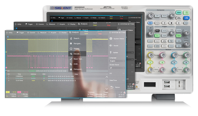 The SDS5000X offers a variety of serial protocol triggers and decodes which are applied in multiple industries.
