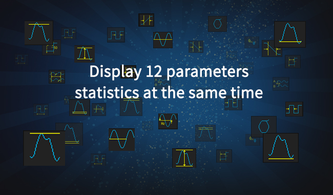 The SDS5000X currently supports over 55 parameter measurements. The advanced measurement function measures 12 parameters simultaneously and displays the trend of the parameter values in the form of a trend graph. The current value of the parameter, average, minimum, maximum, standard deviation and number of statistics are displayed on the screen when you turn on the statistics function.