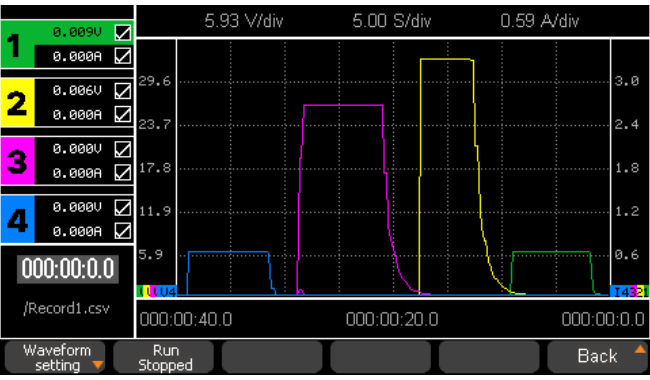 The SPD4000X series is equipped with a 4.3-inch true color TFT-LCD display. Four channels of voltage and current waveform run chart can be set, users can observe the waveform run chart through the colors corresponding to the channels to understand the output status of the four channels.