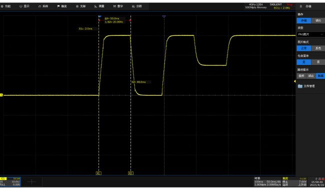 Output response is the instantaneous change of output voltage when the load current changes dynamically. Output response time is the time required for the voltage to return to the set range when the load current suddenly changes.The SPD4000X series achieves fast output response time of < 50us, enabling fast compensation for output voltage changes.