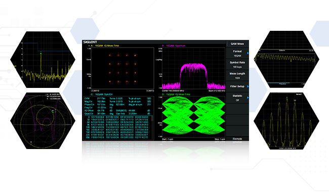 - Supports AM/FM analog modulation analysis and complex modulation analysis functions such as ASK/FSK/PSK/MSK/QAM