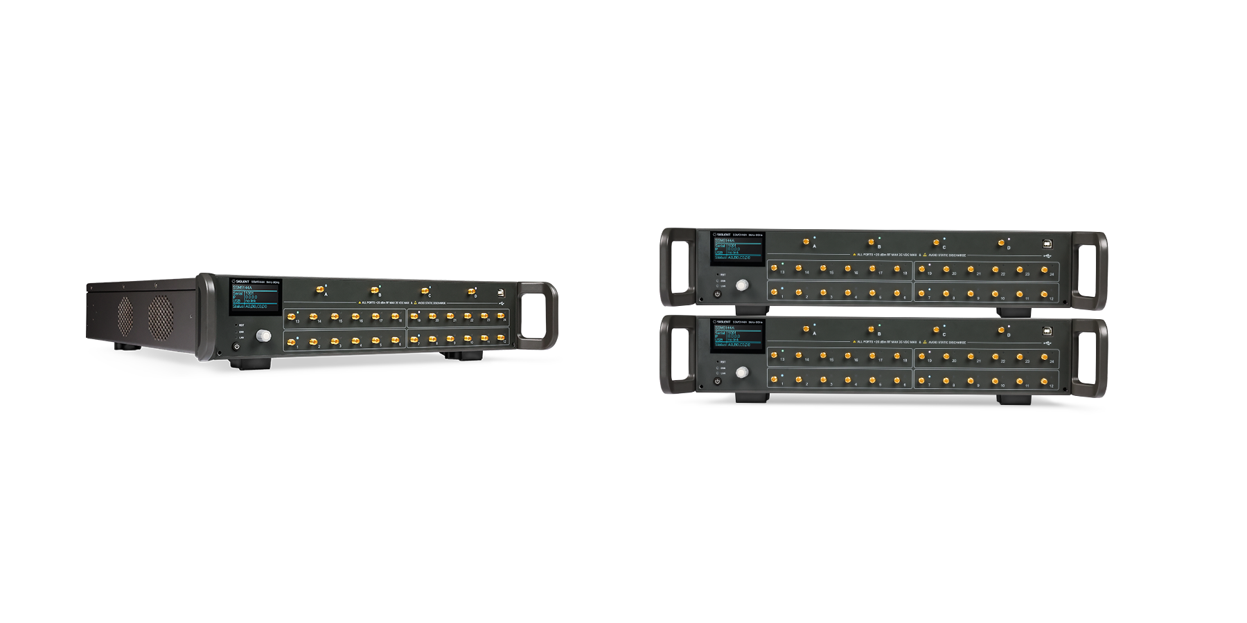 Switch matrix can expand the number of test ports of network analyzer, signal source, spectrum analyzer and other equipment and make the connection of multi-port testing simple. Compared with the traditional measurement method, the measurement speed is greatly improved by using the switch matrix. SSM5000A series are with up to 4 input ports and up to 24 output ports, supporting USB, LAN, Direct Control communication modes. In addition to SIGLENT instruments, it also supports other brand instruments, which greatly adapts to the production line usage scenarios.