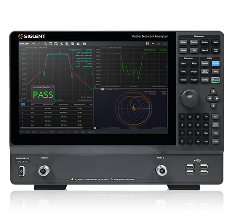 Siglent's Vector Network Analyzer offer a frequency range of 9 kHz to 8.5 GHz, 2 or 4 ports. It includes digital and analog modulation analysis, Cable and antenna measurement, power analysis, EMI pre-compliance test.Applications include research and development, education, production, maintenance, and pre-compliance.